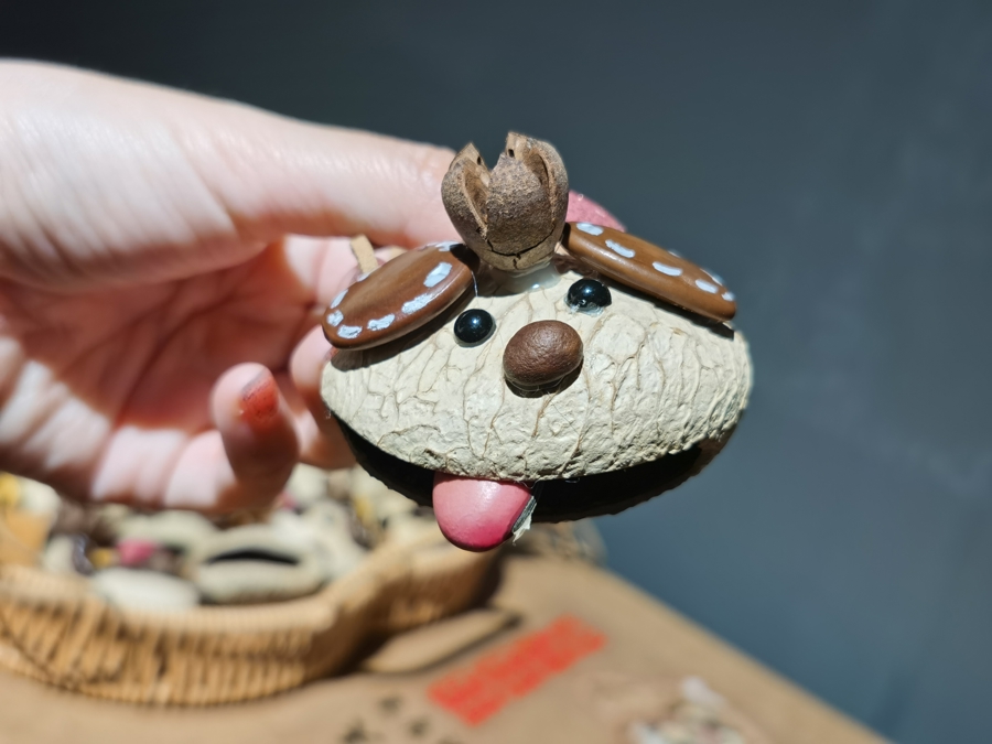榼藤娃娃更是每一个王人唯独无二的手工艺品,买来原材料后,每个东谈主我方运筹帷幄、打样,一般耗时一到三个小时,才作念出一个可人酷爱的娃娃,有些娃娃拿在手里晃一晃,还能听到内部种子碰撞的好听声。