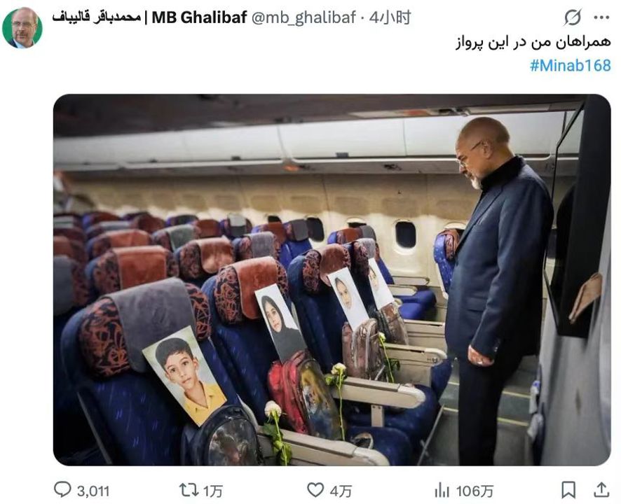 伊朗首席接头代表、伊朗议会议长卡利巴夫今日在我方的社交媒体账号发了一张让东说念主动容的相片,配文“我的遨游同伴们”。