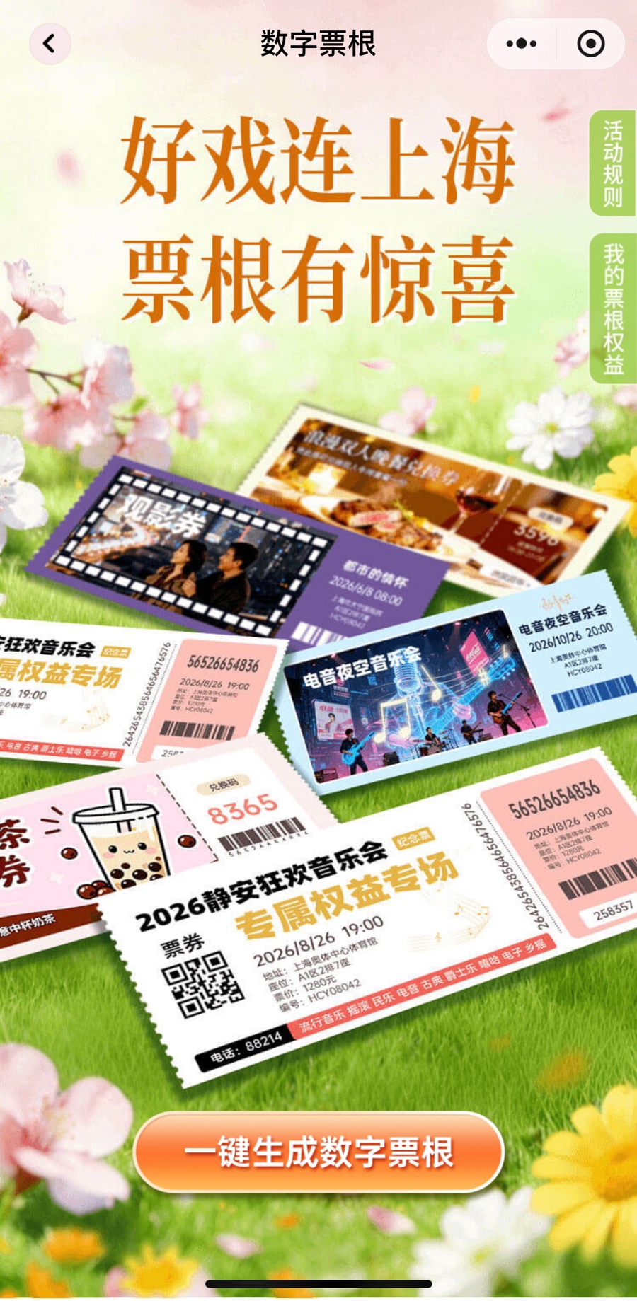 记者现场体验发现,只需用微信大开“静安go”小步调,点击“一键生成数字票根”,导入献艺票图片,几秒钟后,系统便自动推送出一串权力清单——附进餐厅随餐施济菜品、咖啡8.8折、好意思容好意思发抵扣相应金额等……正本行将失效的纸质票根,短暂变身“豪侈通行证”。
